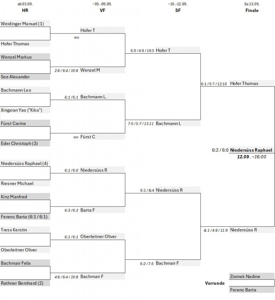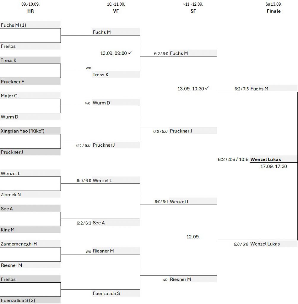 - Turnierleitung: Michael Fuchs (0660 6375651), feat. Manuel Leitner, Harald Huemer